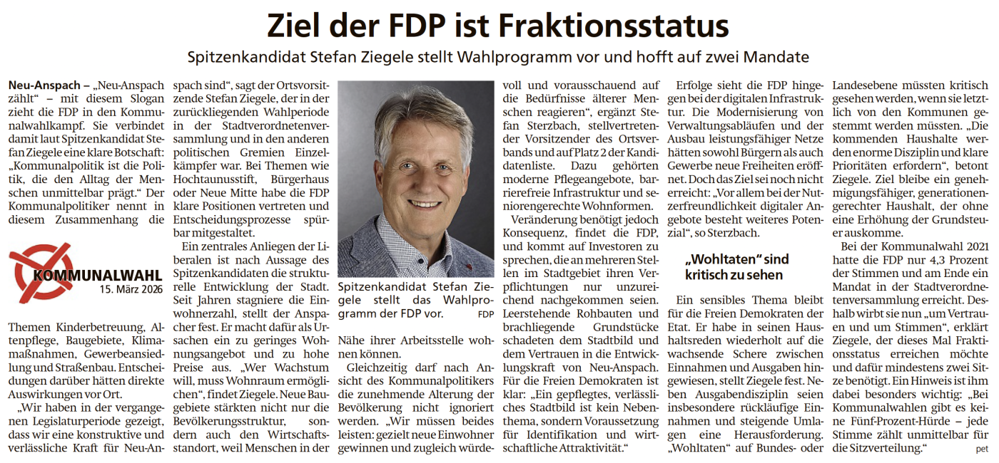 Ziel der FDP ist Fraktionsstatus